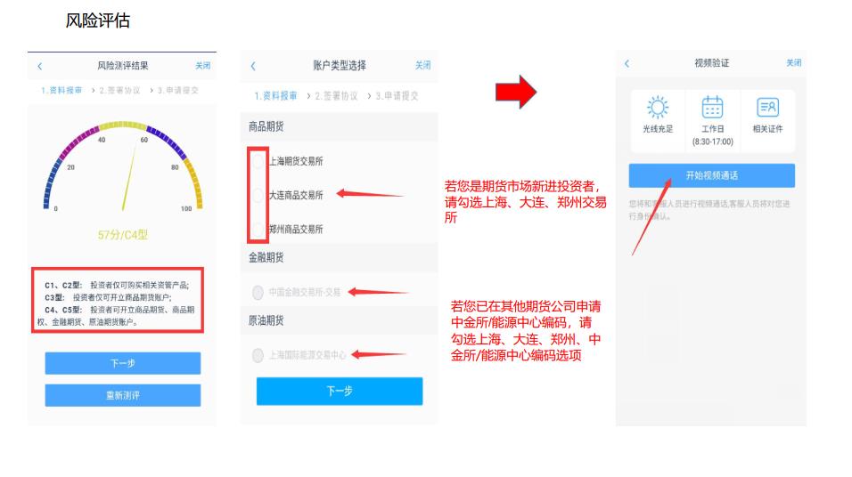 4.上传银行卡,做适当性测试。(测试结果C3级别以上才能开户,也就是说能承受一定的波动。如果你测试结果不够C3,真心建议你不要开户,因为评估结果说明你目前还不适合做期货,如果你非常想做,可以先做做模拟盘。)