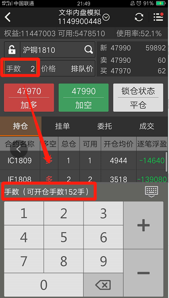 怎么查? (文华财经随身行Android 5.4.6(239))投资者咨询:怎么查? (文华财经随身行Android 5.4.6(239))来源:文华财经 日期:2018-8-29 22:33 怎么查询各商品的保证金比率?技术人员回复日期:2018-8-30 8:04 您是做实盘? 每个期货公司的保证金标准都是不同的,您可以具体咨询下期货公司 随身行作为辅助功能,受本身屏幕限制,提供的是基础的功能 可以直接点击下单手数可以看到最大开仓手数,进行下单或者可以在PC版本wh6下单板》合约栏双击合约可以看到每个合约详细的保证金比例,下载地址:www.wenhua.com.cn 文件名:手数.png