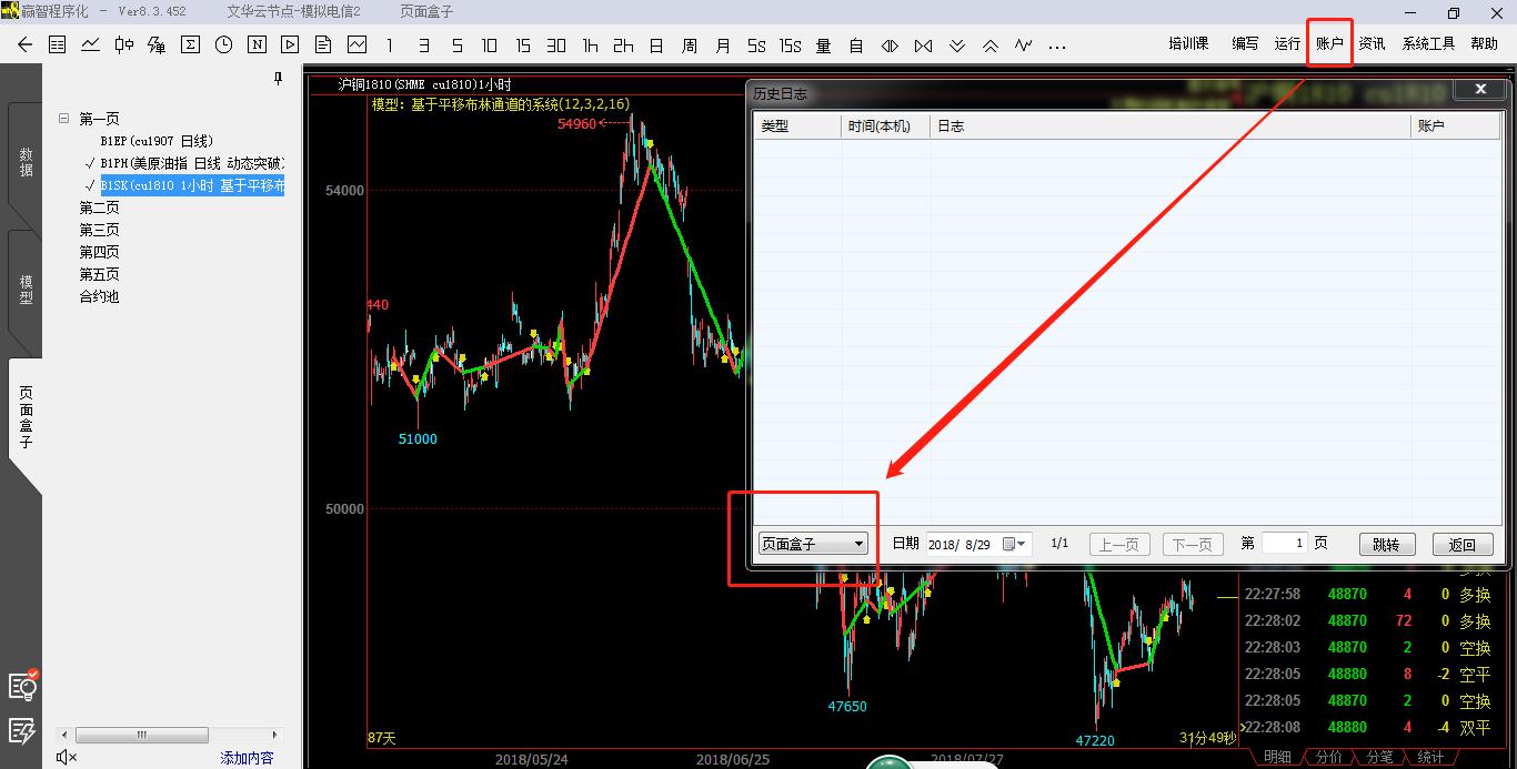 [求助]页面盒子 (文华财经WH8赢智V8.2)投资者咨询:[求助]页面盒子 (文华财经WH8赢智V8.2)来源:文华财经 日期:2018-8-29 22:24 您好 请问WH8的页面盒子的历史信号记录在哪里查到? 谢谢!!技术人员回复日期:2018-8-29 22:30 右上角》账户》监控运行日志》选择页面盒子可以查看