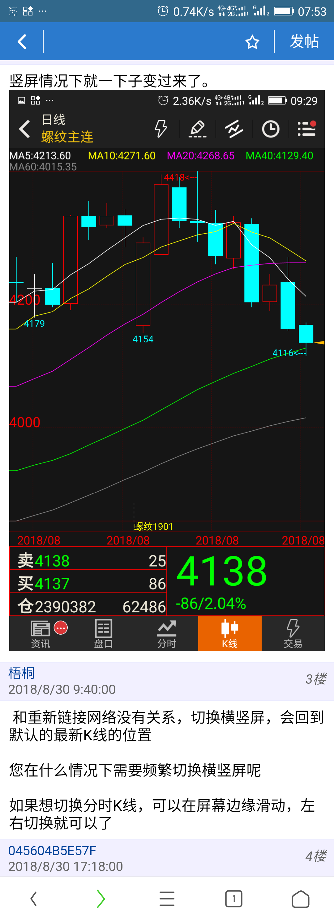 我的意思是不管是横屏情况下,或者是竖屏情况下。我本来把日线图滑到15年的行情。然后仅仅是因为动了一下手机,横屏看的好好的。手机竖过来就成了最新数据了。或者是竖屏情况下。看着14年的行情,手机横了一下,行情就变成最新数据了。