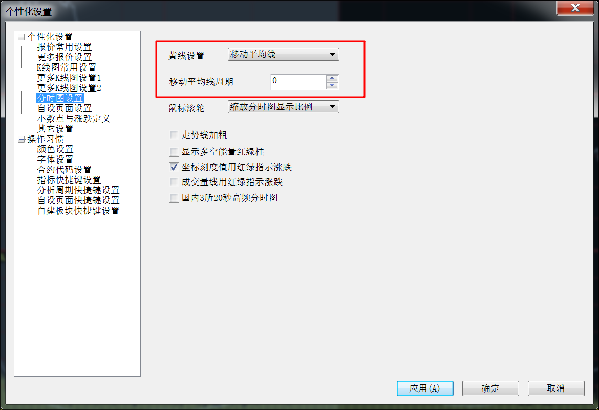 [求助]分时图的黄线能否删除或隐藏 (文华财经WH6赢顺V6.7)投资者咨询:[求助]分时图的黄线能否删除或隐藏 (文华财经WH6赢顺V6.7)来源:文华财经 日期:2018-9-1 23:02 因不需要分时图的黄线,避免造成干扰,不知可否删除或者隐藏。具体怎么操作,望看到的大神老师指点,感谢!技术人员回复日期:2018-9-2 8:10 可以的 右上角》个性化》个性化设置》分时图设置,按下图红框设置一下就可以了