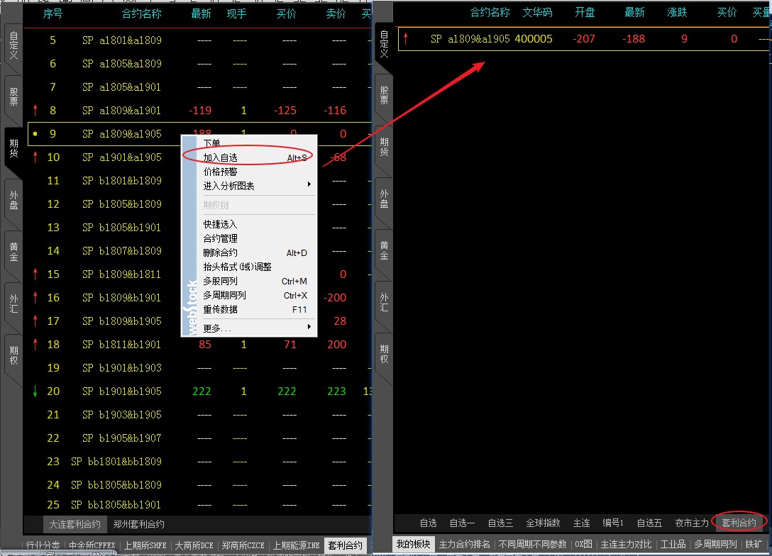 套利合约报价在哪个模块看比较方便?可以截张图吗?