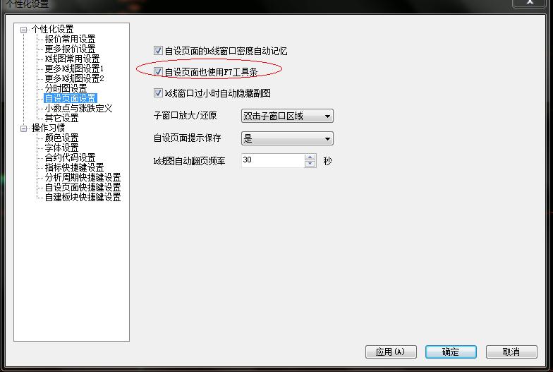 我大多数情况在自定义页面下看盘,因为切分了窗口,所以一般隐掉所有的副图。一来增加了K线及分时的面积,二来不至于太花哨,以免眼睛累。(32、27寸、14寸屏都同时用的。) 但成交量得时不时看一下。所以切换得较频。