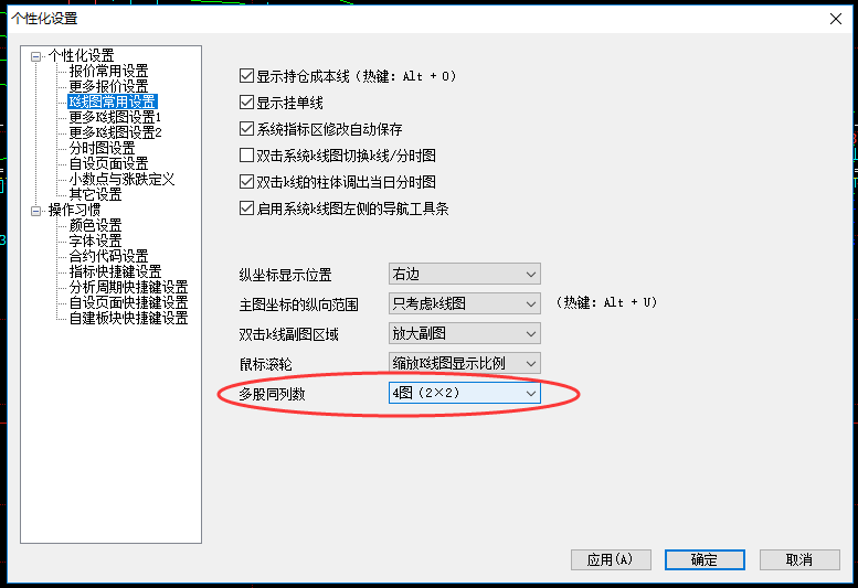 怎样设置2品种或者3品种或者4品种同列,谢谢老师 (文华财经WH6赢顺V6.7)投资者咨询:怎样设置2品种或者3品种或者4品种同列,谢谢老师 (文华财经WH6赢顺V6.7)来源:文华财经 日期:2018-8-28 13:42 如题技术人员回复日期:2018-8-28 13:48 最少支持4个品种同列的,多品种同列就是多个合约同时看盘分析的 您的思路更适合个性化的看盘功能》自设页面,可以任意设置页面、合约 右上角》个性化》新建页面,在这里设置,您可以体验下 另外,您是刚接触软件,右上角》帮助》软件说明书,在这里详细熟悉下投资者咨询:怎样设置2品种或者3品种或者4品种同列,谢谢老师 (文华财经WH6赢顺V6.7)来源:文华财经 日期:2018-8-28 13:42 谢谢,请问4品种怎样同列?我选择多股同列至少显示6个,太多了技术人员回复日期:2018-8-28 16:41 参考下图位置设置: