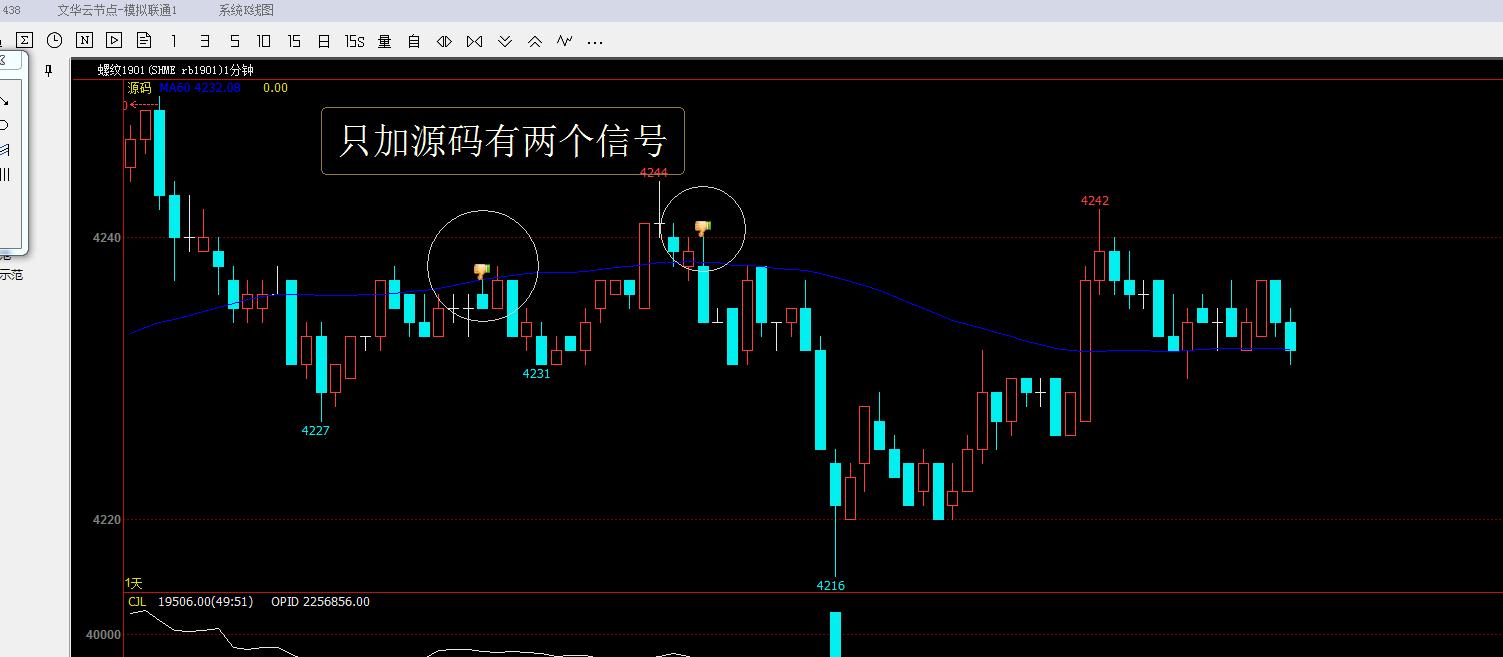 DRAWICON(C<MA60&&K>50&&D>50&&CROSSDOWN(K,D),H,'ICO96'),VALIGN2;