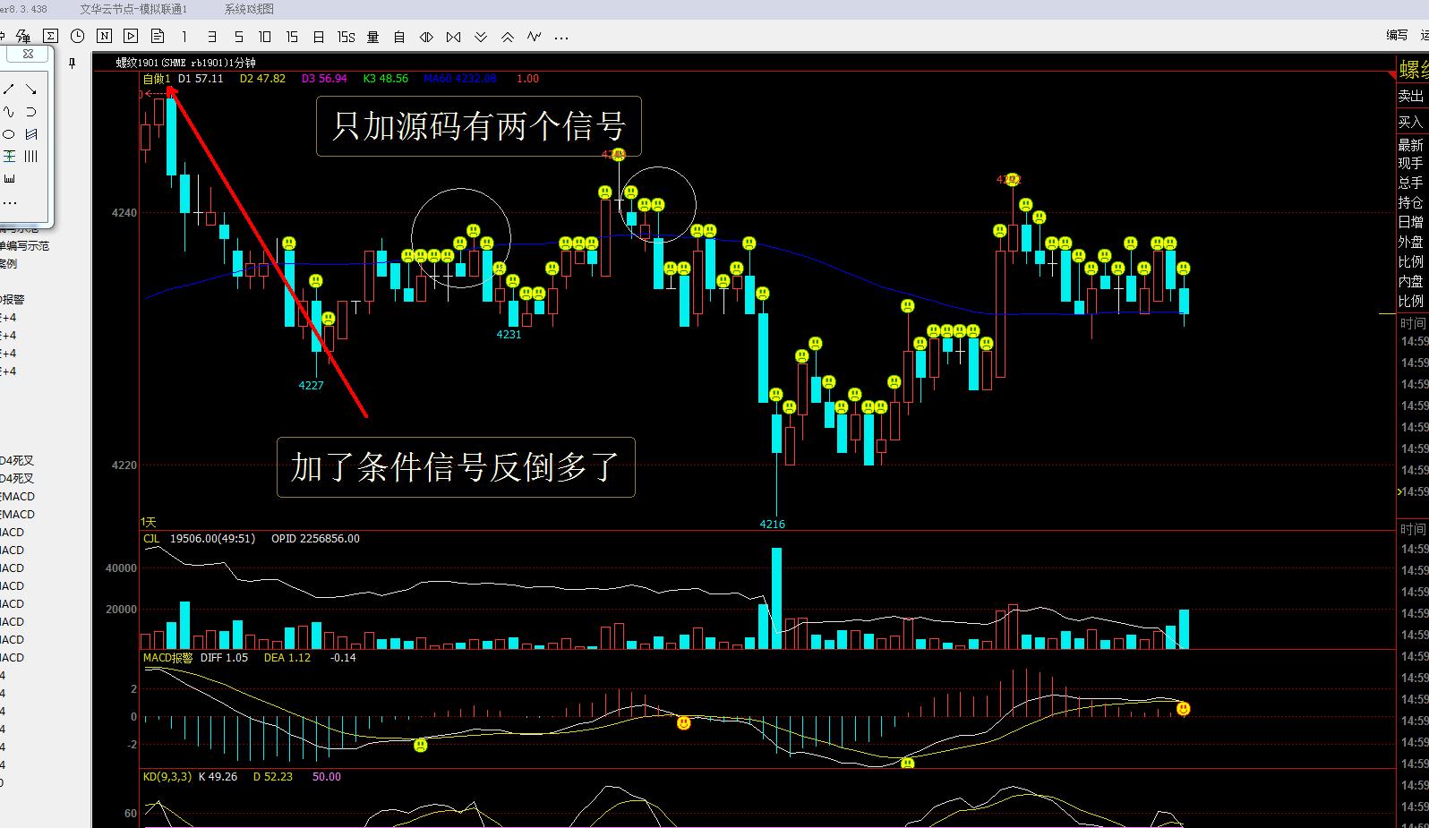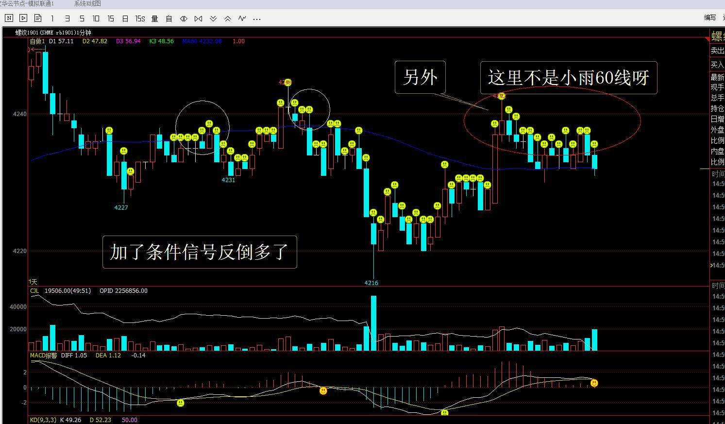 或者满足C<MA60&&K>50&&D>50&&CROSSDOWN(K,D)&&D>D1&&D1>D2&&K3<D3时进行标注?