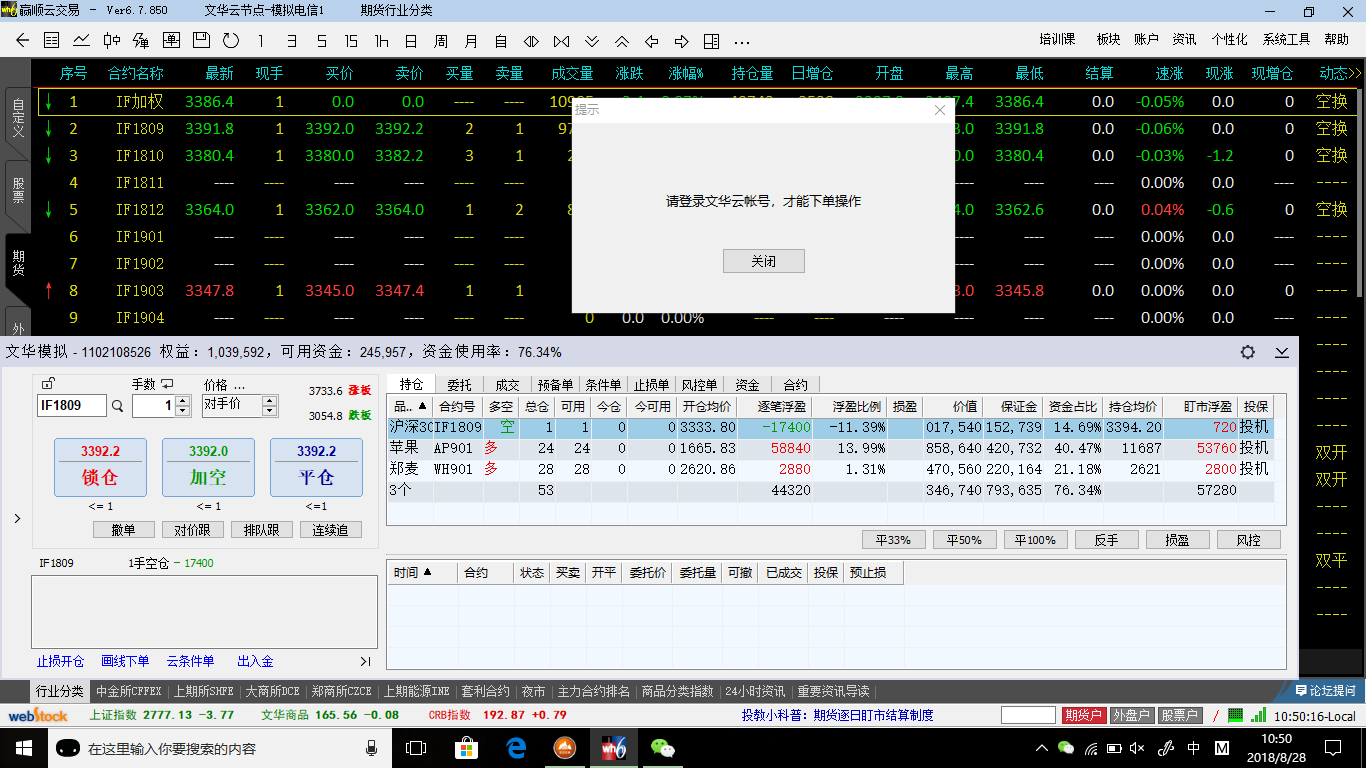 我应经登陆了账号,但是还是做不了交易,还叫我登陆 (文华财经WH6赢顺V6.7)投资者咨询:我应经登陆了账号,但是还是做不了交易,还叫我登陆 (文华财经WH6赢顺V6.7)来源:文华财经 日期:2018-8-28 11:03 我应经登陆了账号,但是还是做不了交易,还叫我登陆技术人员回复日期:2018-8-28 11:05 模拟交易进行了全新改版,目前模拟交易需要使用文华豆右上角菜单》系统工具》文华云服务,登录文华云账号,激活钱包 获得文华豆,就可以进行模拟交易参考文华官网的介绍了解一下:https://www.wenhua.com.cn/fzjy/index.asp 投资者咨询:我应经登陆了账号,但是还是做不了交易,还叫我登陆 (文华财经WH6赢顺V6.7)来源:文华财经 日期:2018-8-28 11:03 现在做模拟还要花钱了技术人员回复日期:2018-8-28 11:17 模拟交易是提升自己交易技能的手段,是一种对自己的训练和培训,训练好技能才能实盘盈利。做任何事,都应该付出成本的。另外,文华维持服务器、带宽、软件升级等事物,也有成本的请给予理解!