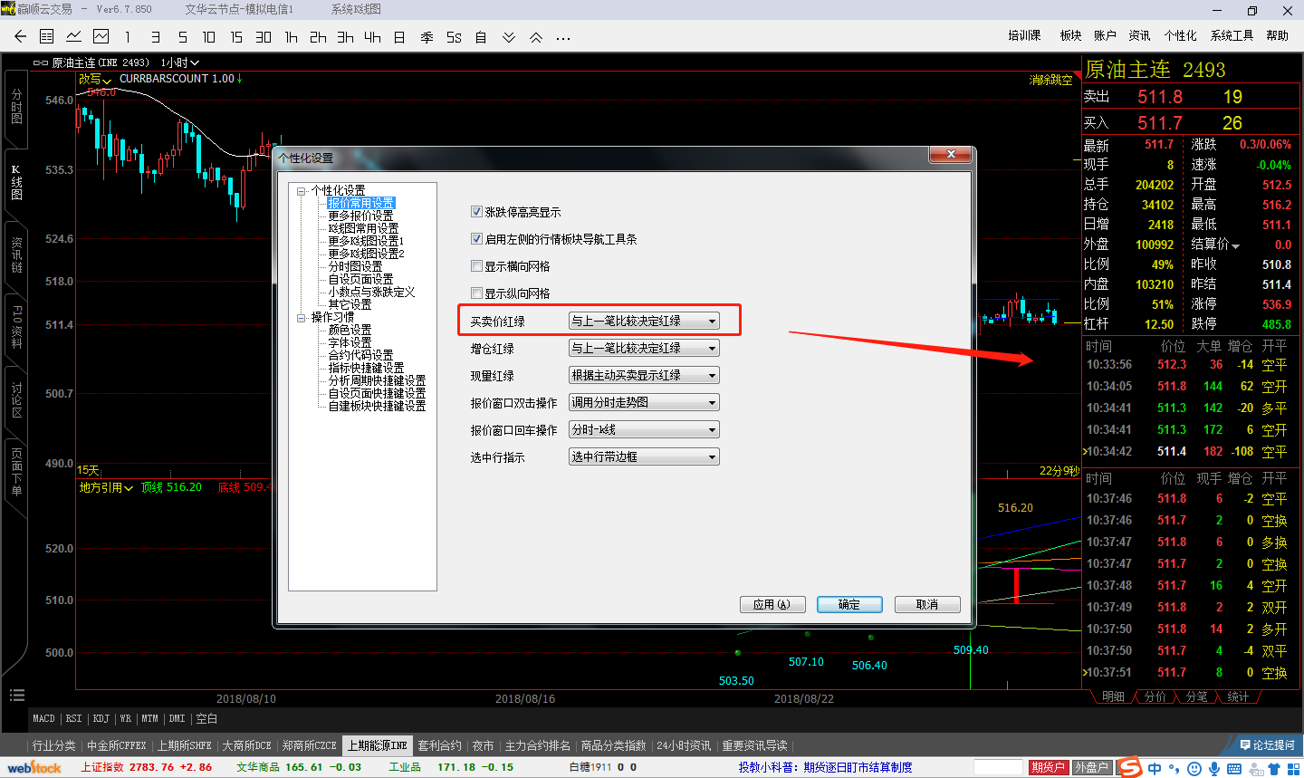 成交明细列表价位颜色定义 (文华财经WH6赢顺V6.7)投资者咨询:成交明细列表价位颜色定义 (文华财经WH6赢顺V6.7)来源:文华财经 日期:2018-8-28 10:19 你好老师,成交明细列表,价位的颜色在红色、绿色、白色间变换,是依照什么定义颜色变换的?最新一笔成交价小于上一笔成交价也显示红色、小于昨收昨结也显示红色 技术人员回复日期:2018-8-28 10:39是在个性化中设置的 软件右上角》个性化》个性化设置,您可以自行选择对比的标准来确定红绿