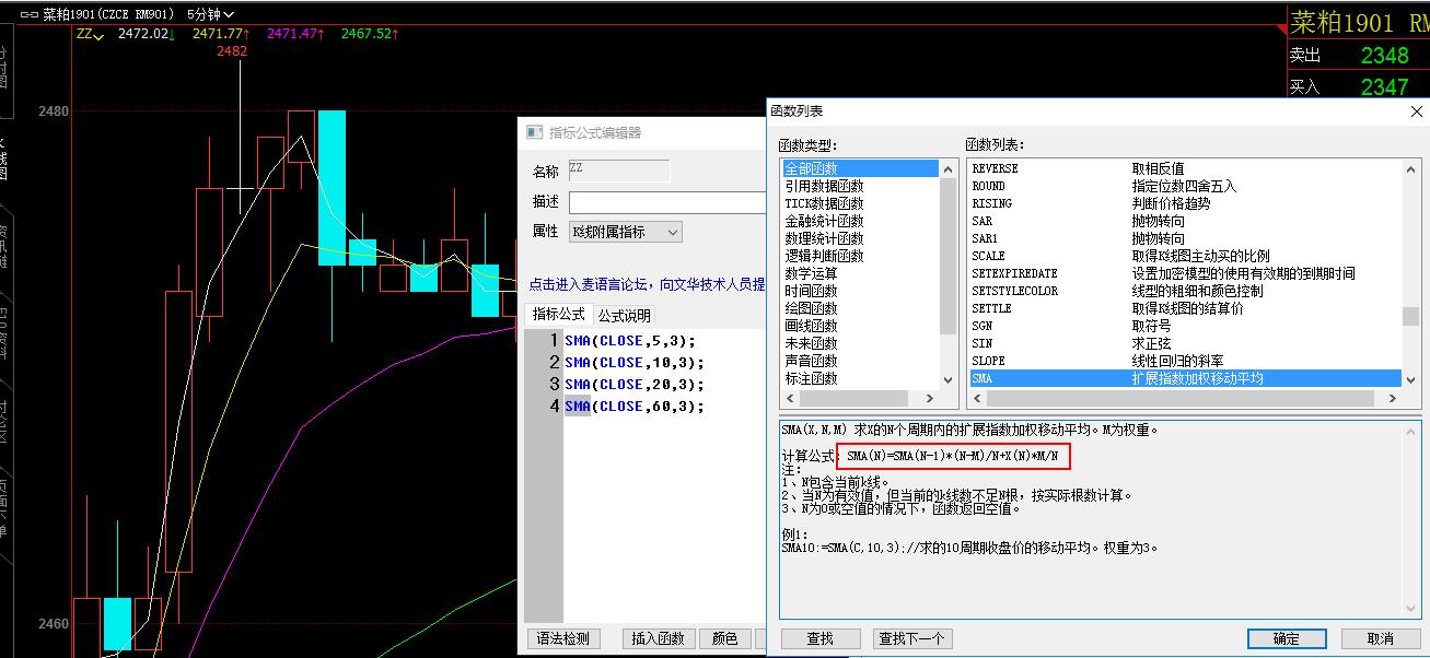 求指导编辑SMA指标公式? (文华财经WH6赢顺V6.7)投资者咨询:求指导编辑SMA指标公式? (文华财经WH6赢顺V6.7)来源:文华财经 日期:2018-8-27 16:05 老师:求指导编辑SMA指标公式?SMA(CLOSE,N,5); SMA(CLOSE,N,10);SMA(CLOSE,N,20);SMA(CLOSE,N,60);技术人员回复日期:2018-8-27 16:25 SMA函数的第二个参数是周期参数,第三个参数代表权重 SMA(X,N,M) 的具体算法函数说明中有公式介绍,您了解一下