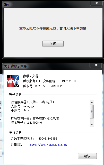 投资者咨询:购买了文华豆,能在手机上交易,为什么不能在电脑上交易? (文华财经WH6赢顺V6.7)