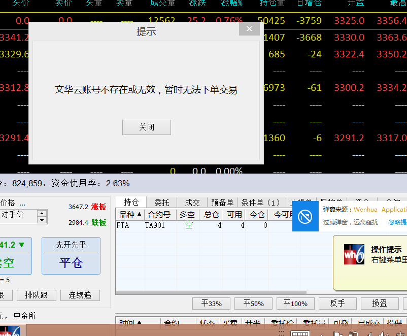 截图反映软件问题 (文华财经WH6赢顺V6.7)投资者咨询:截图反映软件问题 (文华财经WH6赢顺V6.7)来源:文华财经 日期:2018-8-27 10:43 文件名:screenshot20180827104233.png技术人员回复日期:2018-8-27 10:44 用你的模拟交易帐号,就可以登录文华云右上角菜单》系统工具》文华云服务,登录文华云账号,激活钱包 获得文华豆,就可以进行模拟交易参考文华官网的介绍了解一下:https://www.wenhua.com.cn/fzjy/index.asp