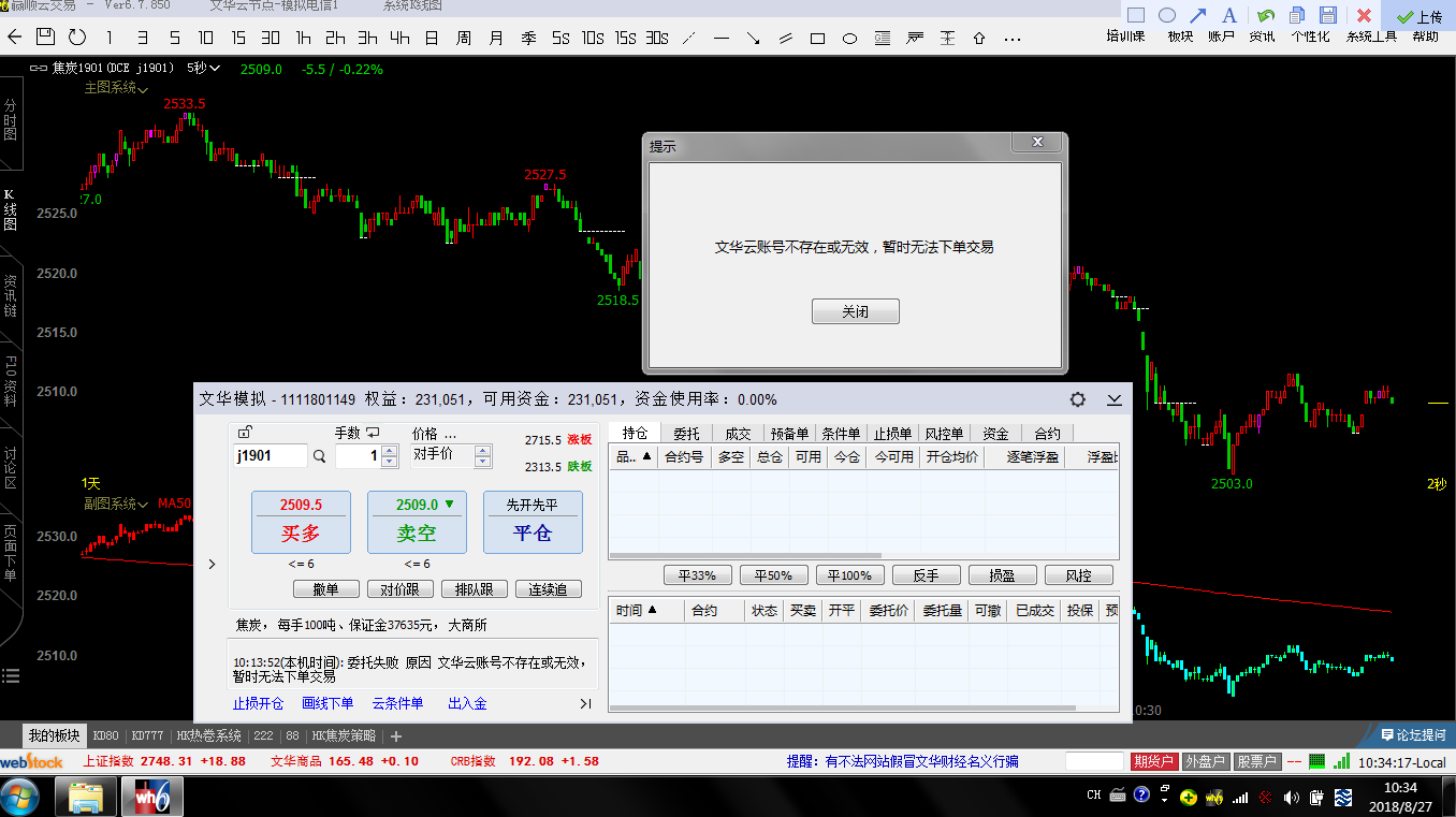 截图反映软件问题 (文华财经WH6赢顺V6.7)投资者咨询:截图反映软件问题 (文华财经WH6赢顺V6.7)来源:文华财经 日期:2018-8-27 10:36 文件名:screenshot20180827103434.png技术人员回复日期:2018-8-27 10:37 用您的模拟交易帐号,就可以登录文华云右上角菜单》系统工具》文华云服务,登录文华云账号,激活钱包 获得文华豆,就可以进行模拟交易参考文华官网的介绍了解一下:https://www.wenhua.com.cn/fzjy/index.asp