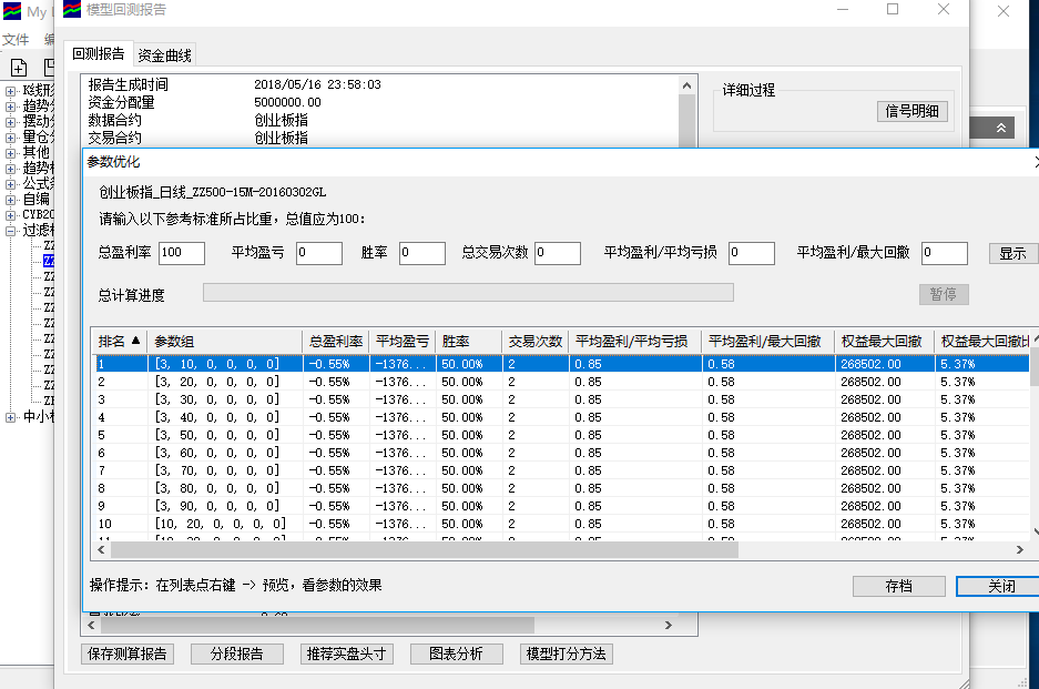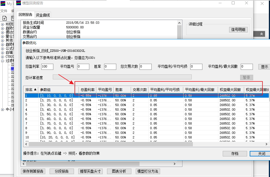 因为参数优化的界面内,已经列出关注度比较高的一些抬头项目,您可以根据这些抬头项目进行排序筛选,选择更加适合的参数组,然后再进一步去查看回测报告