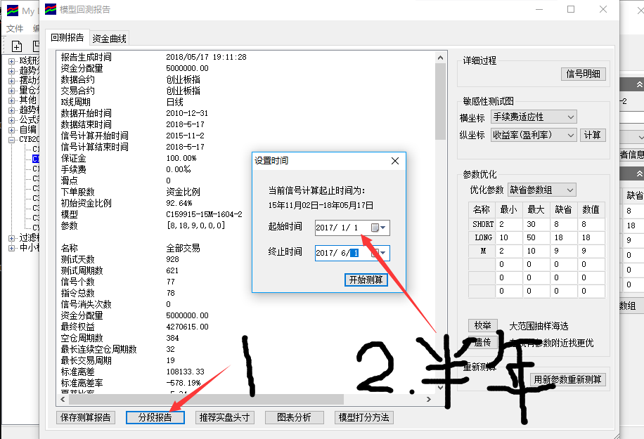 我理解你的意思,其中一些的步骤我省略,导致你误解我的意思了,例如我先优化2017-1-1到2017-6-1 ,找到10个参数(这100个是这半年最好的),然后全程预览1017年到2018年。我需要看曲线的走势。看下这10个参数的收益率曲线是否可以保持同样的斜率。或者其他。