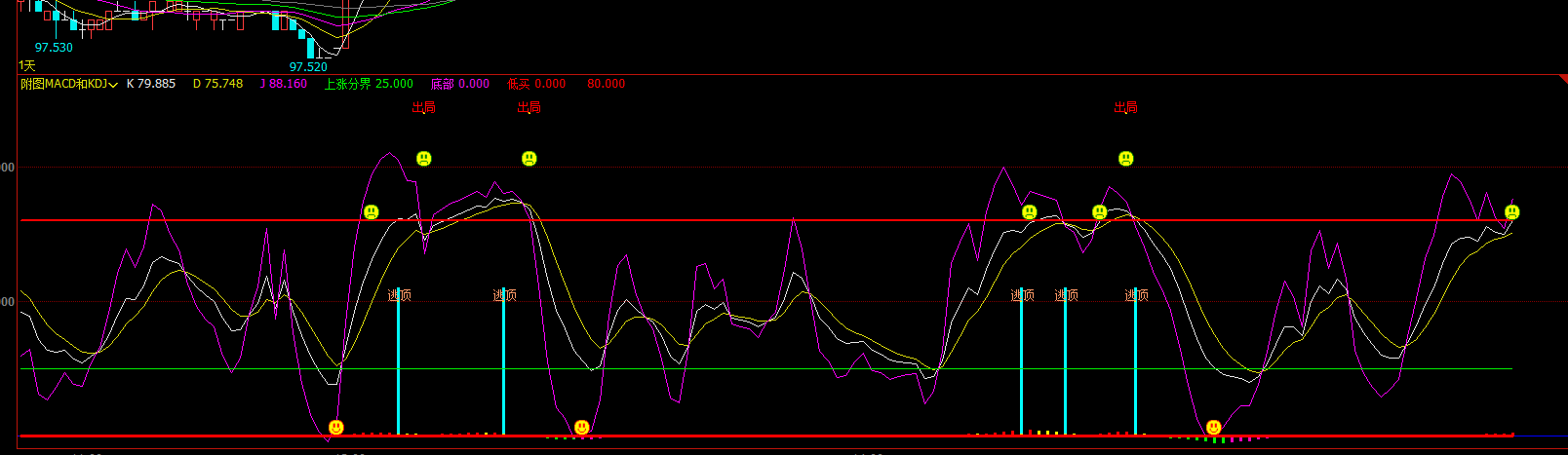 DRAWTEXT(CROSS(卖出线,动力线),120,'出局'),COLORRED;