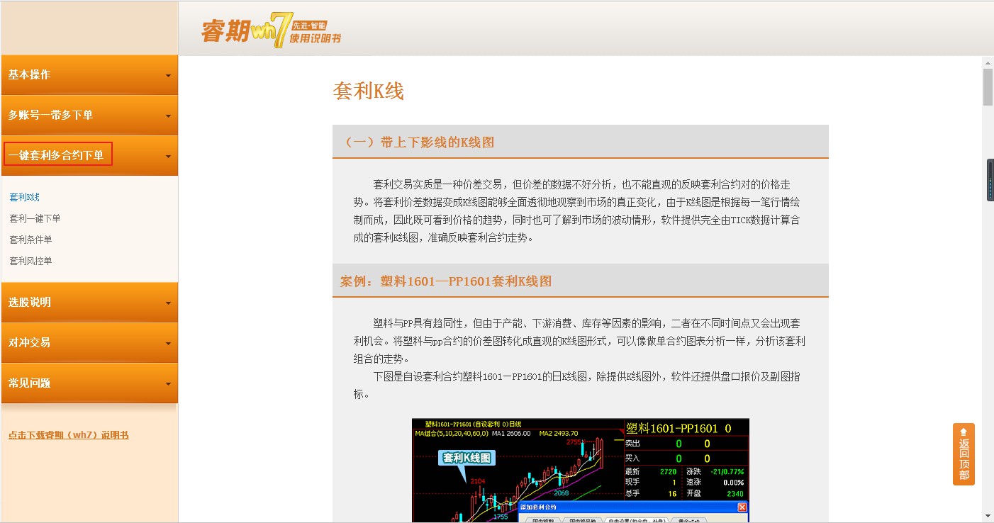 请教套利合约的问题 (文华财经wh7睿期)投资者咨询:请教套利合约的问题 (文华财经wh7睿期)来源:文华财经 日期:2018-5-16 14:49 1. 如果两条腿一个流动性级别高,一个流动性级别低,是先下单流动性低的,等成交了再下单流动性高的吗?2. 如果将两条腿的流动性都设置为低或都为高,是怎么处理的呢?技术人员回复日期:2018-5-16 15:12 1、是的,先对流动性低的一腿下单,成交后再对流动性高的合约下单,有效避免瘸腿现象 2、流动性相同的话,就会同时发委托了,没有优先级的关系 更多套利的使用,右上方 帮助》软件说明书中可以了解