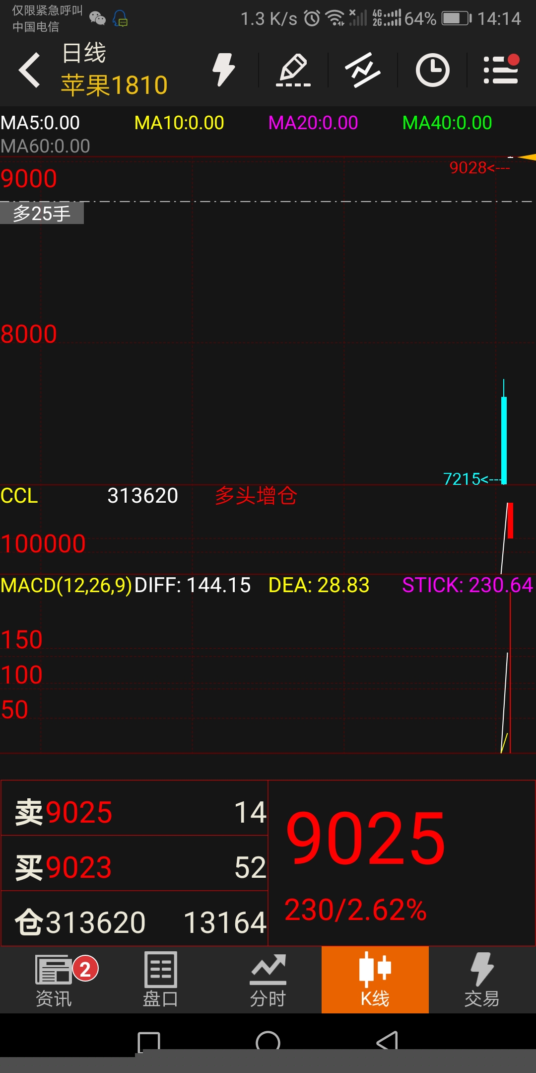 关于手机版掉线的问题 (文华财经随身行Android 5.3.7)投资者咨询:关于手机版掉线的问题 (文华财经随身行Android 5.3.7)来源:文华财经 日期:2018-5-16 14:59 今天下午手机版行情错误,请问是怎么回事? 文件名:Screenshot_20180516-141445.jpg技术人员回复日期:2018-5-16 15:09 您本地随身行频繁掉线?这个现象跟软件没关系的 看您截图本地网络环境不太好,所以才会频繁掉线,影响了行情的接收 建议切换到正规的电信wifi,或者数据流量,信号比较充足的地方手机系统设置中清除随身行缓存,再重启软件试试看