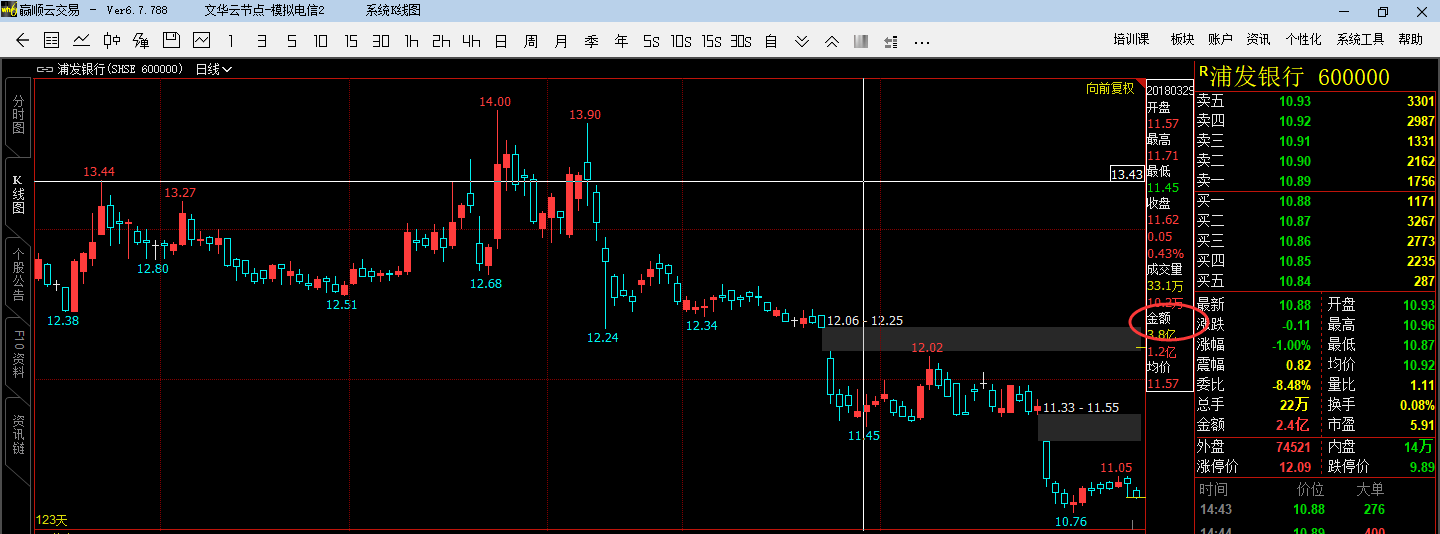 投资者咨询:如何显示成交额 (文华财经WH6赢顺V6.7)