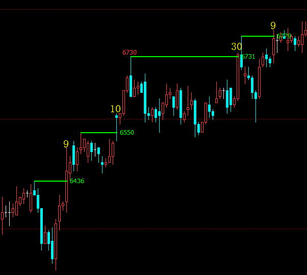 DRAWSL1(CROSS(H,HH)&&COUNT(CROSS(H,HH),SUMBARS(GD,1))||ISLASTBAR,HH,0,SUMBARS(GD,1),1),COLORGREEN;