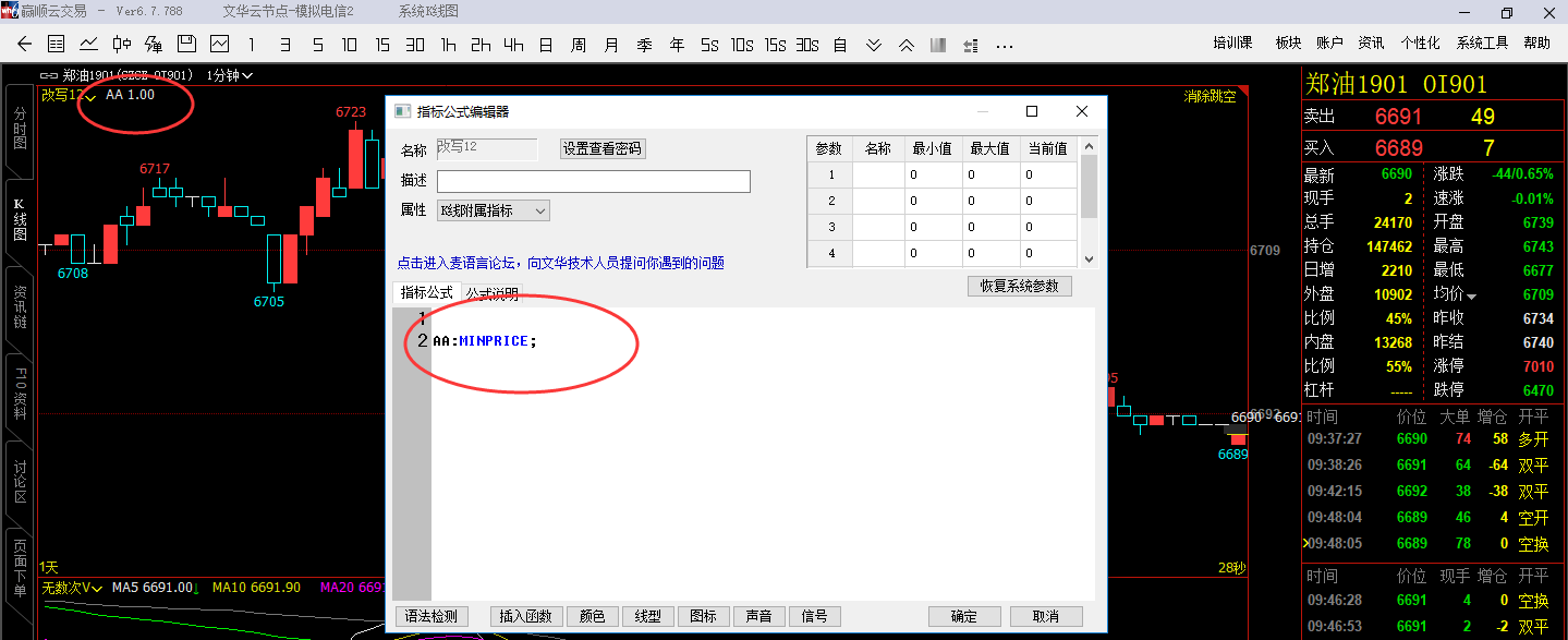 投资者咨询:截图反映软件问题-MINPRICE读取参数错误 (文华财经WH6赢顺V6.7)