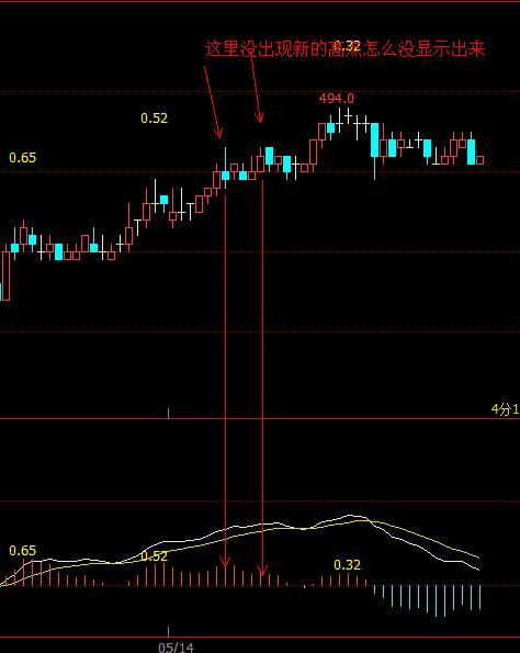 根据截图查看,后五周期最高价应该大于等于您左边第一个箭头的30周期内最高价了