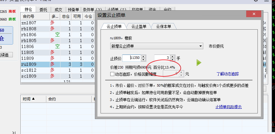 设定止盈止损线 (文华财经WH6赢顺V6.7)投资者咨询:设定止盈止损线 (文华财经WH6赢顺V6.7)来源:文华财经 日期:2018-5-15 23:45 如果拉动持仓线设定止盈止损线时不但能标出数值而且能标出百分之几 那就完美了 尤其对于设定止损线十分重要 技术人员回复日期:2018-5-16 8:28 持仓栏右键》设置止损单,可以查看止损百分比 止损线设置一般最常关注的是价格,如果想查看更精细的百分计算可以在设置界面查看