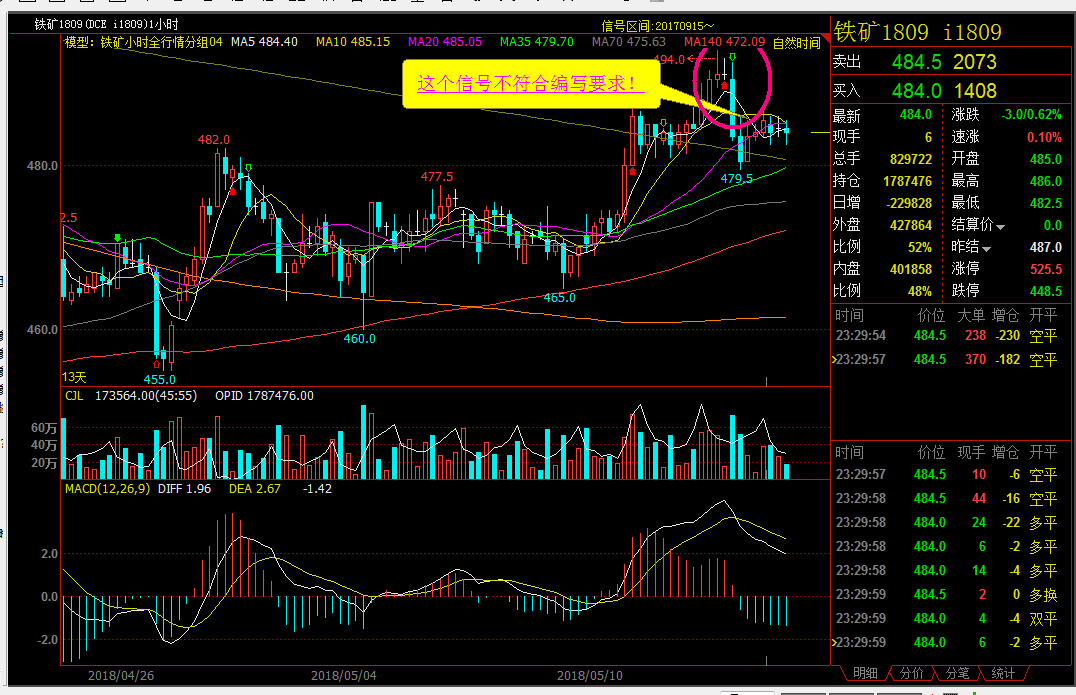 合约是铁矿1809,就是昨天,老师如果需要也可回测看一下,截图附下: