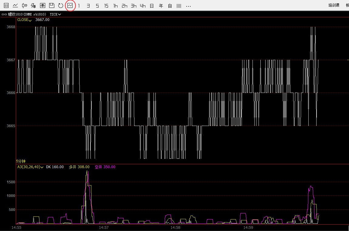 多开和空开的判断,是通过每笔tick数据来的,所以可以在tick周期取相应的成交量值