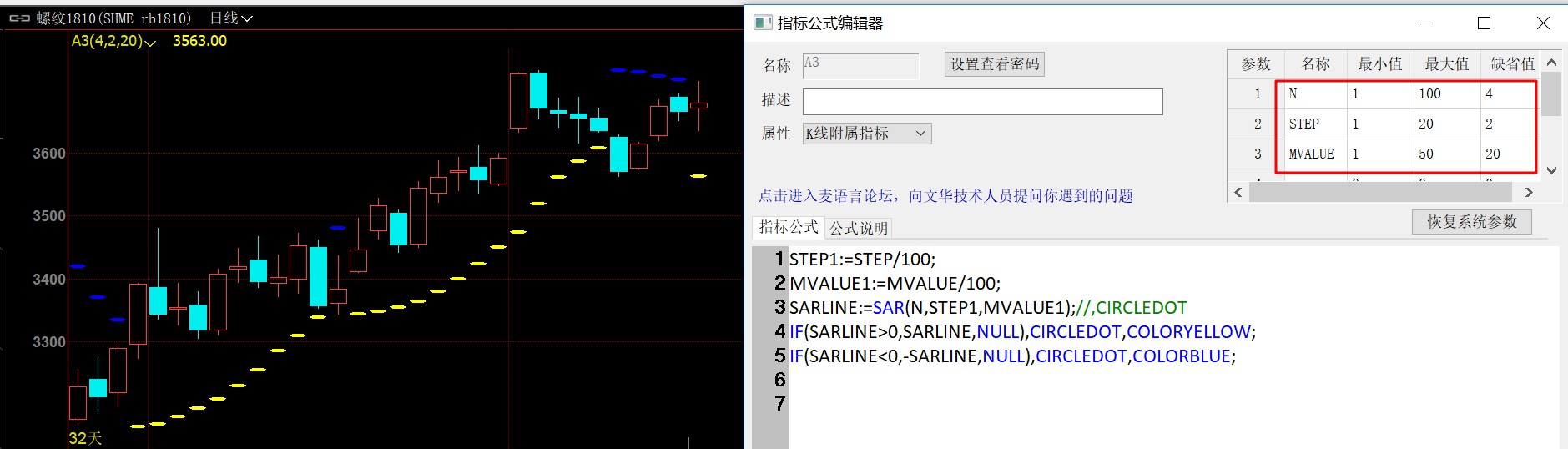 系统的SAR指标是经过特殊处理的,1楼需求需要新建指标实现STEP1:=STEP/100;