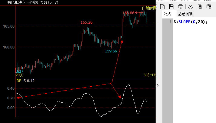 举例来说,以SLOPE函数计算收盘价斜率表述涨速,编写参考: