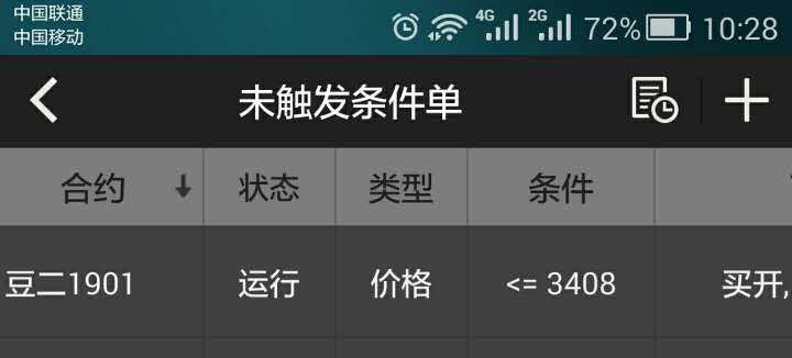条件单是根据k线行情判断的,如截图所示,当日最低价是3479,还没有满足您设置的开仓条件3408,所以没有触发的