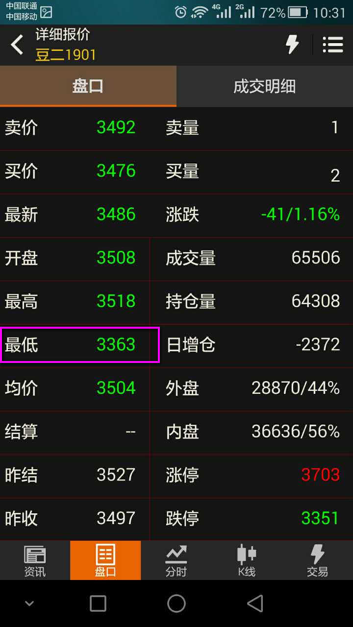 今天(5月15号 )最低价3363
