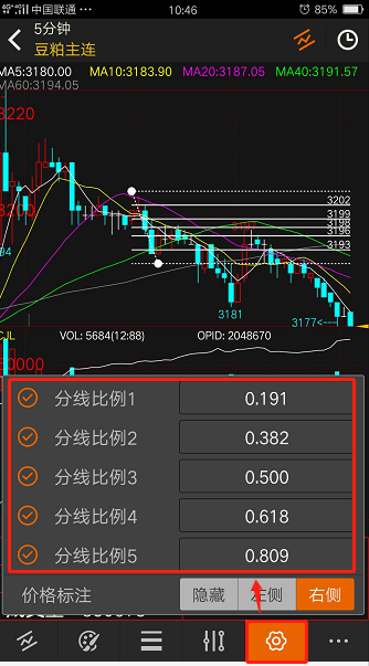 投资者咨询:黄金分割线手机板没有扩展线 (文华财经随身行Android 5.4(235))