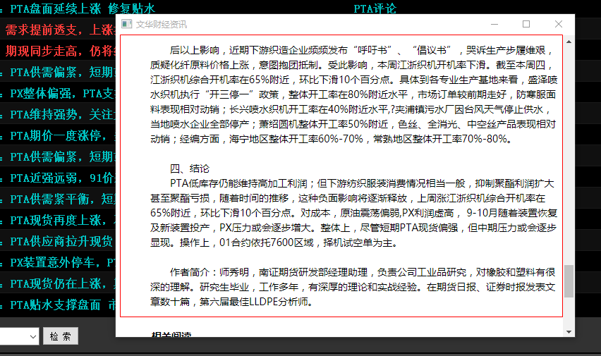 [求助]请教如何把红方框中的字体放大? (文华财经WH6赢顺V6.7)投资者咨询:[求助]请教如何把红方框中的字体放大? (文华财经WH6赢顺V6.7)来源:文华财经 日期:2018-8-22 17:13 请教如何把红方框中的字体放大?技术人员回复日期:2018-8-22 17:18 在标题处可以选择放大字体显示的 如截图,您可以体验试下投资者咨询:[求助]请教如何把红方框中的字体放大? (文华财经WH6赢顺V6.7)来源:文华财经 日期:2018-8-22 17:13 谢谢!