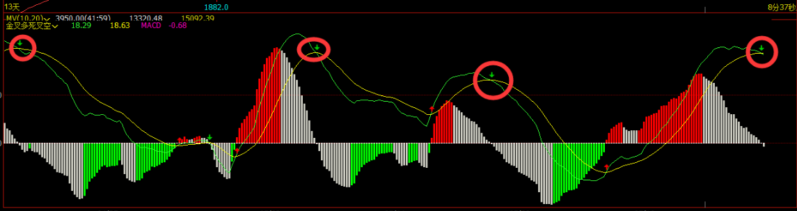 如果需要以箭头的形式在副图标注金死叉,参考: