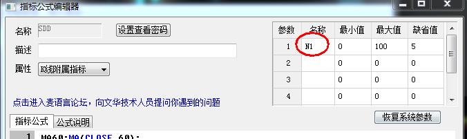 已经编写的模型如何修改参数? (文华财经WH6赢顺V6.7)投资者咨询:已经编写的模型如何修改参数? (文华财经WH6赢顺V6.7)来源:文华财经 日期:2018-5-14 10:44 界面上有6个参数可以填写 已经保存了的修改参数的名称? 技术人员回复日期:2018-5-14 10:56 点击合约名称即可修改了 需要注意的是,在参数列表中修改了参数名称,需要在下面指标编写也对应修改投资者咨询:已经编写的模型如何修改参数? (文华财经WH6赢顺V6.7)来源:文华财经 日期:2018-5-14 10:44 参数可以改 参数名字好像不能修改啊!而且是不是只能有6个参数?技术人员回复日期:2018-5-14 11:19 参数名称可以修改的 您按照2楼截图位置,点击下名称,会有蓝色选中背景,再进行修改就可以了,您操作设置下就明白了 另外,参数默认最多是6个,足够满足大多数思路了,想要添加更多可以通过编写的方式,例如: M1:=10;