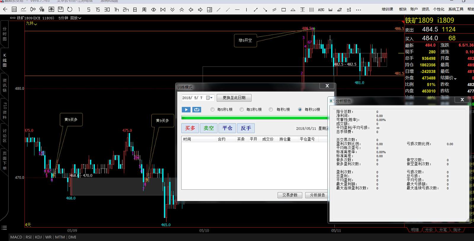 截图反映软件问题 (文华财经WH6赢顺V6.7)投资者咨询:截图反映软件问题 (文华财经WH6赢顺V6.7)来源:文华财经 日期:2018-5-13 15:33你好我想测试5分钟k线上黄色9开多,绿色9开空,的成功率1复盘演练和训练模式好像是一样的吗?2怎么操作,为什么分析报告显示没有执行?谢谢 文件名:screenshot20180513153004.png技术人员回复日期:2018-5-13 18:47 1、复盘演练用于日内交易的复盘,复盘每根k线的形成过程 训练模型用于中长期策略,您根据需求选择适合的方法来复盘就可以了 2、复盘是针对手动交易者设计的,需要在复盘过程中手动下单,才有相应的分析报告 不会在出现黄色的9时自动下单的,您了解下