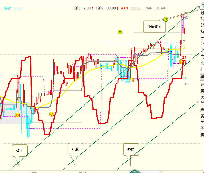 截图反映软件问题 (文华财经WH6赢顺V6.7)投资者咨询:截图反映软件问题 (文华财经WH6赢顺V6.7)来源:文华财经 日期:2018-5-12 19:21老师。请帮忙画出这3条45度角的虚线好吗 文件名:screenshot20180512192124.png技术人员回复日期:2018-5-13 7:41 您可以用甘氏线画出45度线,在甘氏线右键》取消所有分线比例和其他参数中的边框,就是下图的效果 注意:勾选下次画线用这个参数,就可以直接是画45度线了 您体验一下 投资者咨询:截图反映软件问题 (文华财经WH6赢顺V6.7)来源:文华财经 日期:2018-5-12 19:21 老师.可以实现下边与对角的45度线的写法吗技术人员回复日期:2018-5-13 11:25 是想再画一条45度线吗?还是要延长处理? 请具体说明一下