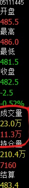关于几个参数的问题,希望能给予解答,谢谢 (文华财经WH6赢顺V6.7)投资者咨询:关于几个参数的问题,希望能给予解答,谢谢 (文华财经WH6赢顺V6.7)来源:文华财经 日期:2018-5-11 23:22 1、图像中成交量的两个参数,分别代表什么意思? 2、为何成交量如此大,持仓量却没什么变化,为啥?谢谢你的解答技术人员回复日期:2018-5-12 9:01 1、成交量黄色数字,表示当根k线成交量;红色数字表示当根k线相比前一根k线成交量的变化值2、技术分析方面,建议上网查找相关资料研究下,或者咨询期货公司专业人员了解看看