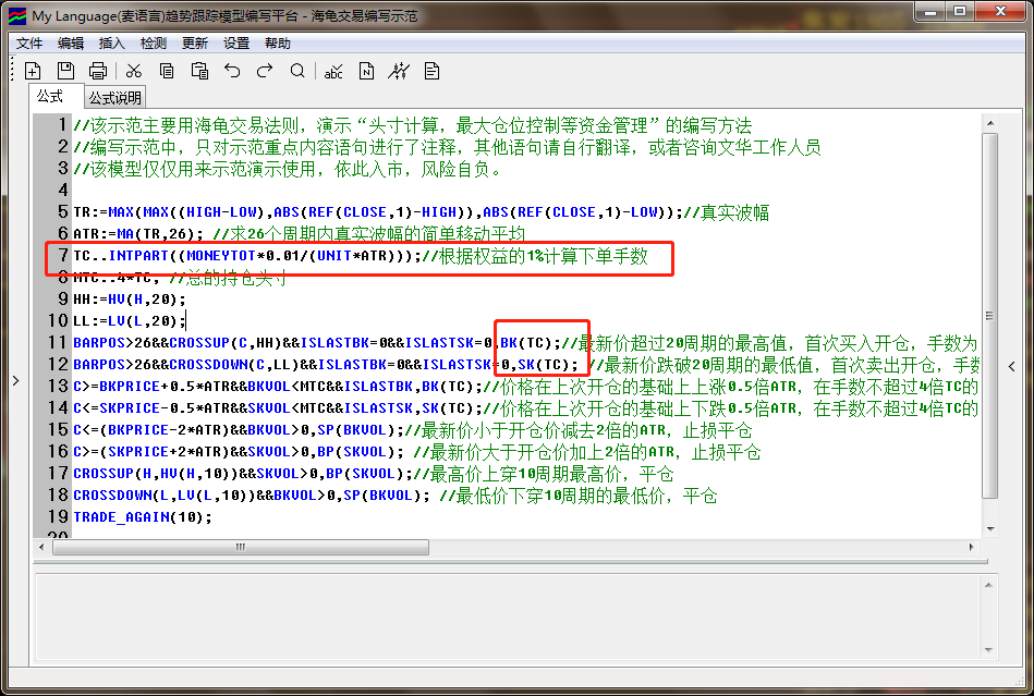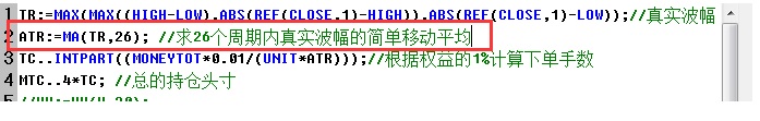 TC..INTPART((MONEYTOT*0.01/(UNIT*ATR)));//根据权益的1%计算下单手数