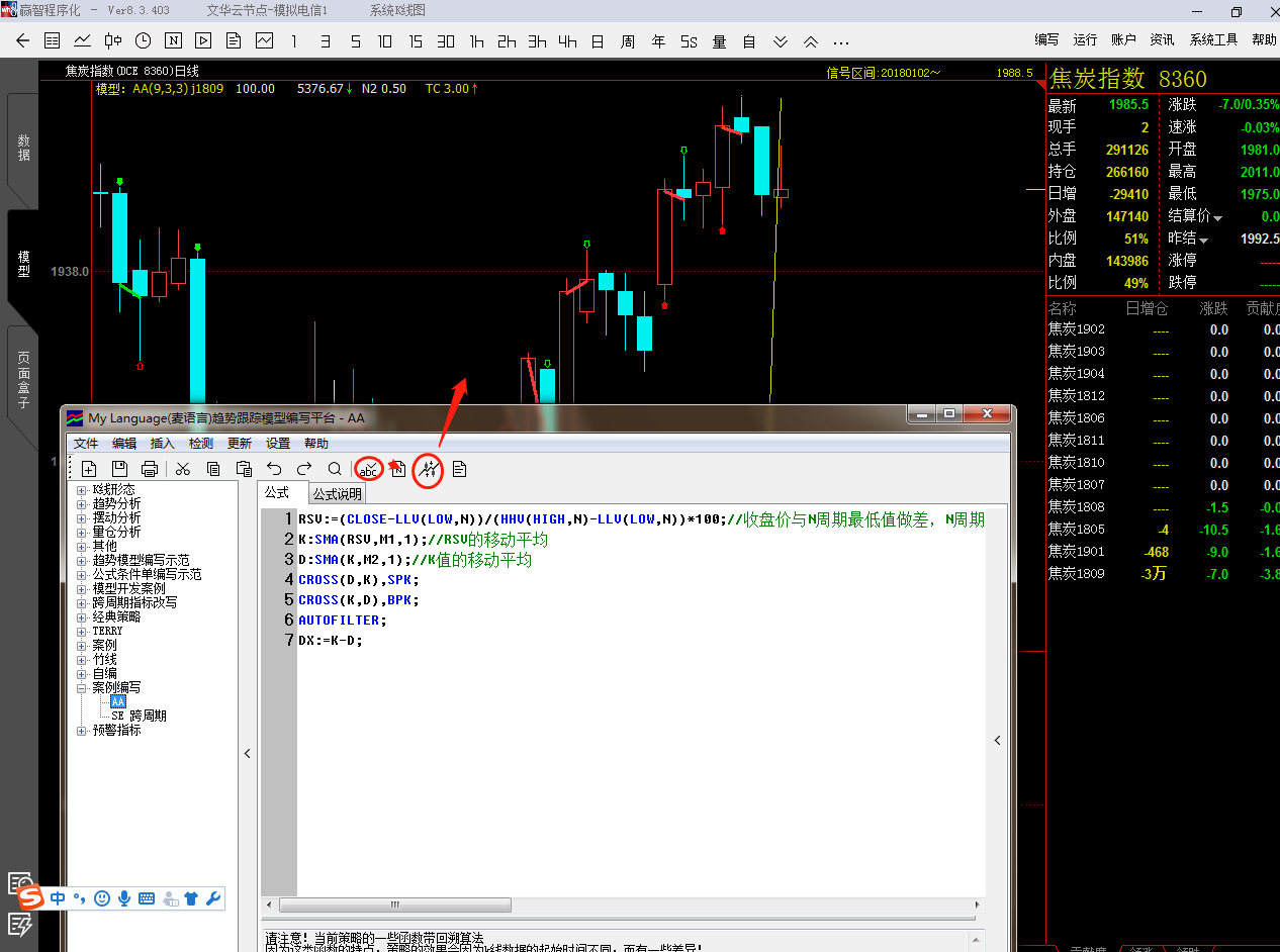 [求助]请问WH8如何导入模型 (文华财经WH8赢智V8.2)投资者咨询:[求助]请问WH8如何导入模型 (文华财经WH8赢智V8.2)来源:文华财经 日期:2018-5-10 12:01 请教下有模型源码后在WH8如何导入呢技术人员回复日期:2018-5-10 13:05 编写》编写公式》新建,将源码复制进去保存即可 之后单击截图所示位置,就可以在主图上加载源码了