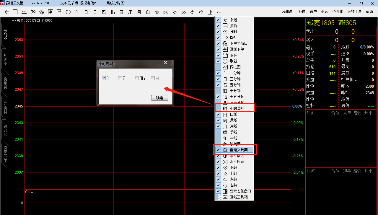 如何增加K线 (文华财经WH6赢顺V6.7)投资者咨询:如何增加K线 (文华财经WH6赢顺V6.7)来源:文华财经 日期:2018-5-10 8:56 现有很多K线图分析(比如分钟有1、3、5、15,小时有1小时,我想增加一个4小时的K线图,如何增加,谢谢技术人员回复日期:2018-5-10 9:00 单击小时,就可以增加4小时周期了另外,其他周期,您可以单击自定义周期进行加载查看