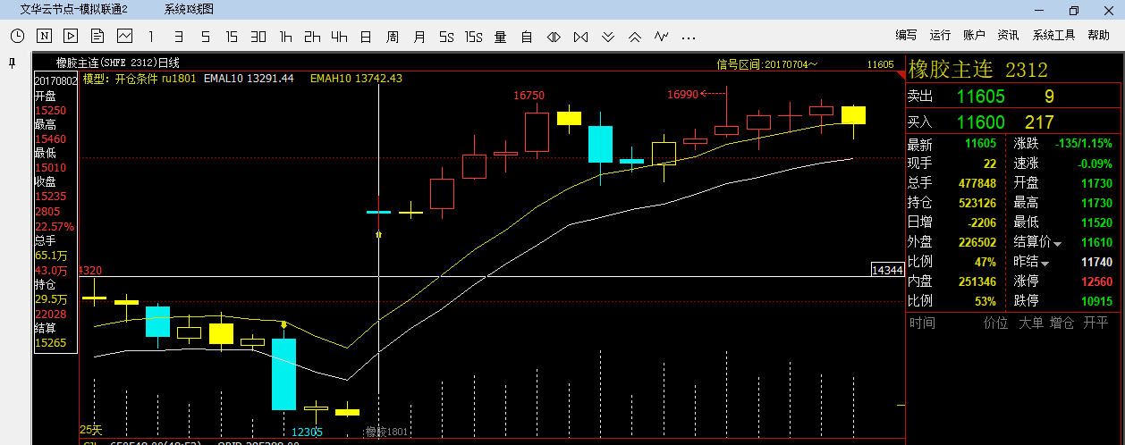 橡胶,一年的日k线回测的,比如2017.8.2橡胶主连日k,那天的数据不对