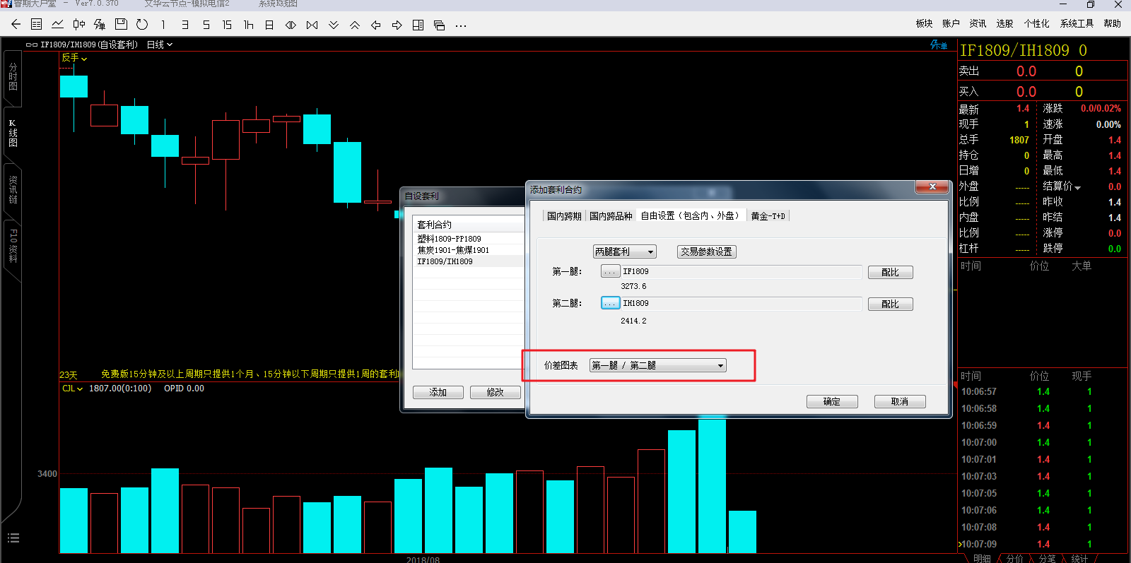 软件右上角个性化-自设套利合约-添加-自由设置,如图修改成价比