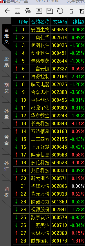 其实做期货的人大多数用不了这个功能,因为期货总共才30多个品种,但是股票就不一样了,3,4千多个股票,这个功能很有必要,像通达信等股票软件都有这个功能,希望文华财经也能增加。