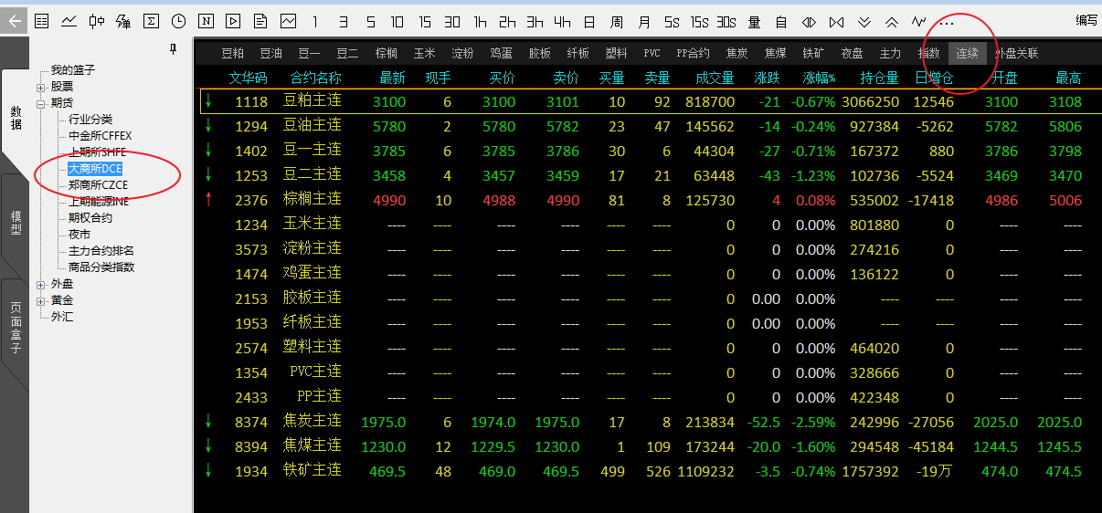 1.可以查看主连合约,有换月的标志,可以查看每个时期对应的主力合约