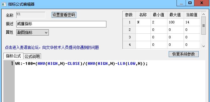 WR威廉指标说明写错了吧 (文华财经WH6赢顺V6.7)投资者咨询:WR威廉指标说明写错了吧 (文华财经WH6赢顺V6.7)来源:文华财经 日期:2018-5-8 16:05 老师好, WR威廉指标,公式是最高价-收盘价,除以全部波动范围。指标说明是最低价-收盘价。是指标说明写错了吧?技术人员回复日期:2018-5-8 16:19 文字说明有误已发现,感谢反馈,下次升级就修改了