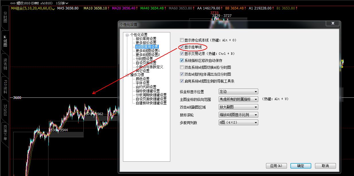 在K线图直观可以看到一条实线,就是挂单线,更加清晰便于操作,更符合您的思路