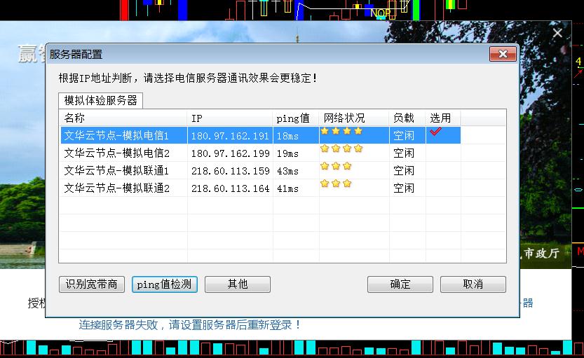 空闲无法登陆 (文华财经WH8赢智V8.2)投资者咨询:空闲无法登陆 (文华财经WH8赢智V8.2)来源:文华财经 日期:2018-5-8 9:09 老师好为什么经常出现空闲无法登陆,反馈过n次了。 退出软件重新开启成为样了 技术人员回复日期:2018-5-8 9:27 点击配置服务器》选择联通服务器登录看下