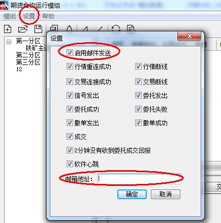 在收到邮件的时候,行情早就跑远了,查看时效性不强的,因此预警本身是不支持设置邮件提示的 您说的邮件提醒是在模组中实现的。模组都是由程序化执行操作,使用邮件来监控模组运行情况 具体设置是在软件右上角》运行》期货运行模组》设置》日志邮件进行启用和勾选相关内容即可